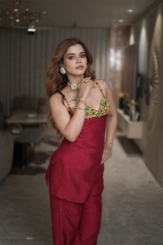 Regular price Rs. 13,700.00Regular priceUnit price / perSale price Rs. 13,700.00Crimson Royale Hand-Embellished Co-ord Set