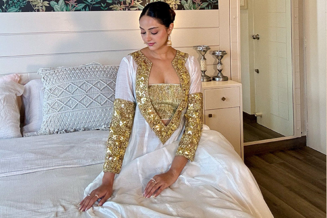 Regular price Rs. 8,900.00Regular priceUnit price / perSale price Rs. 8,900.00Gold Shoulder Blazer Set
