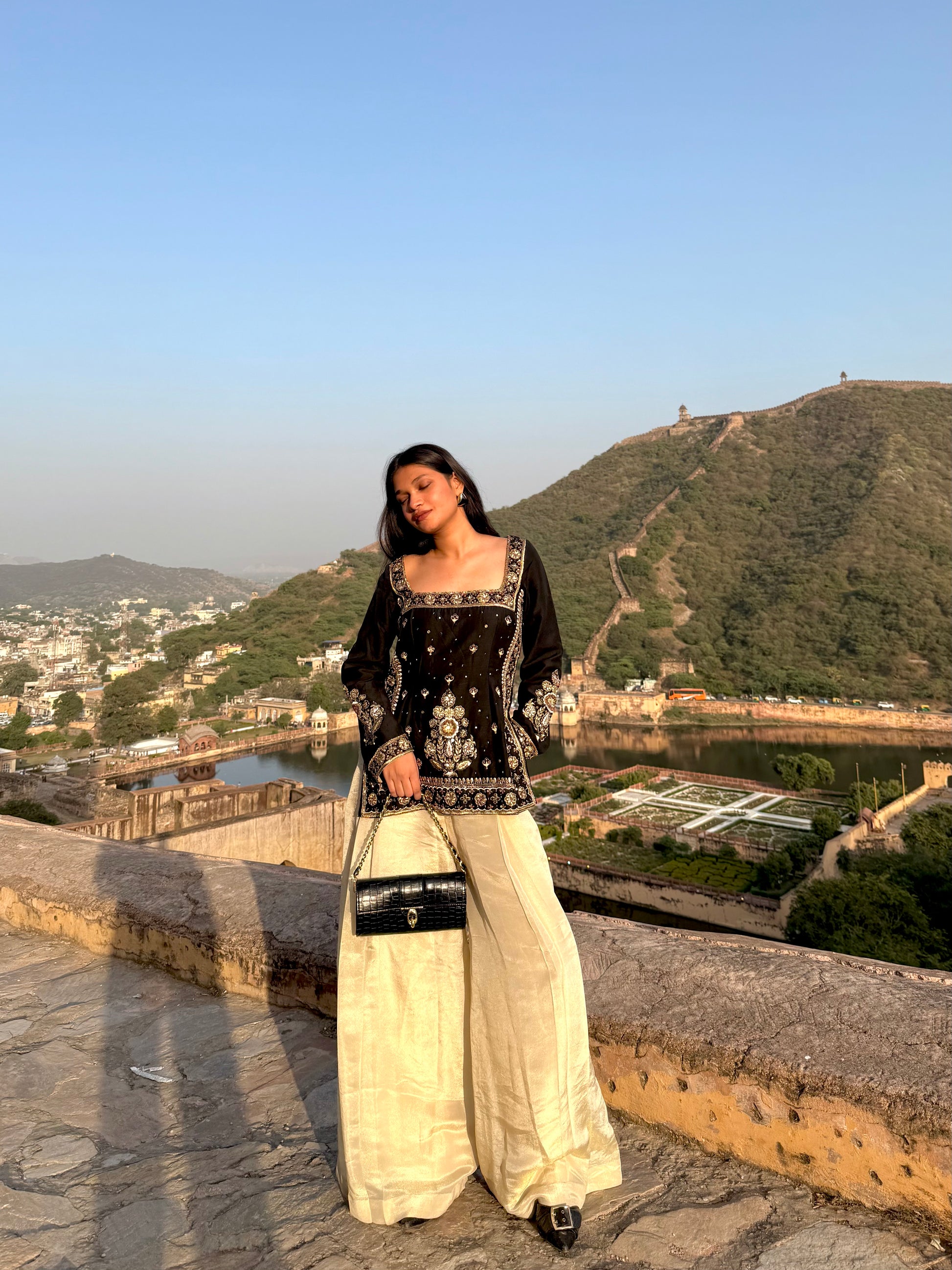 A poetic blend of royal nostalgia and contemporary ease — the Zarina Pant Set embodies timeless elegance with a modern sensibility.